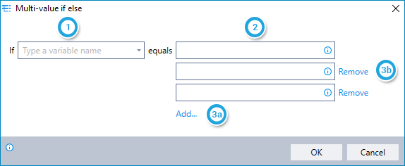 For each condition, enter the value with which you wish to compare the variable's value (can be entered manually or copied from values stored in variables).