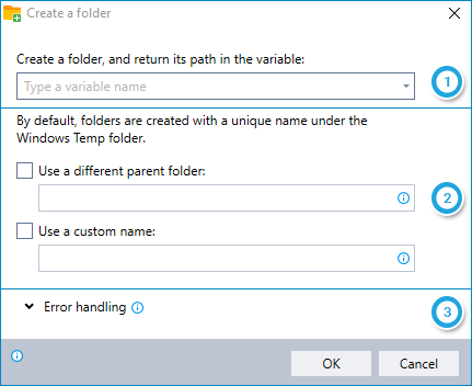 If you elect not to specify these options, the new folder will be created by default in the Windows Temp folder, with a unique name.