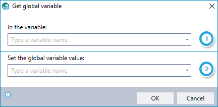 Retrieve the value of a global variable (previously created in a different wizard using the Set Global Variable command) and place it into a standard variable in the current wizard.