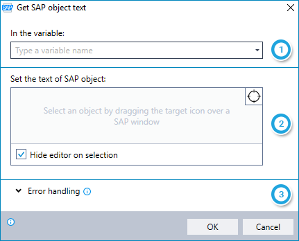 Retrieve the text of an object in the active SAP window and place it into a new or existing variable.