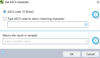 There are times when you need a wizard to use a special character, but the character does not appear on the keyboard. The GET ASCII CHARACTER command allows you retrieve the character you need and place it into a variable to use later.