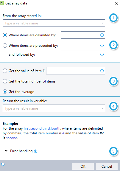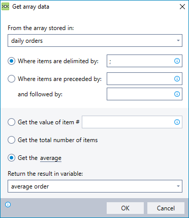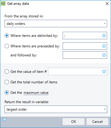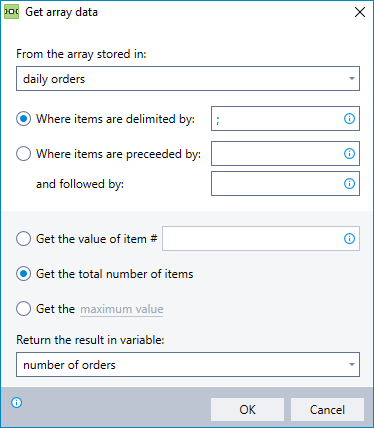 Obtain specific information from a variable containing a string of items (an "array"). You can choose to obtain the following types of information:
