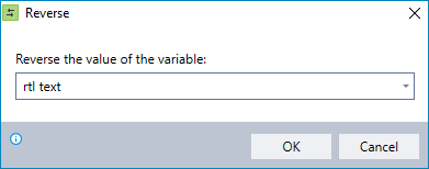 Reverse the value of a variable, character by character. This can be particularly useful when working with applications that do not natively support right-to-left languages.