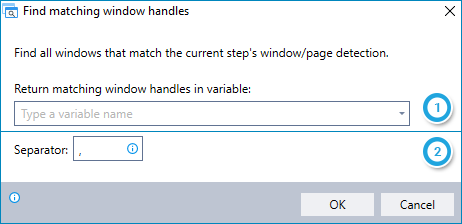 Retrieve the handles of all running windows that match the current step's window detection criteria and place them into a new or existing variable.