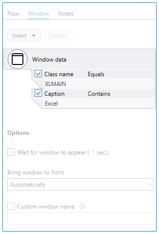 To learn more about how the wizard identifies the window on which the action is performed, see the Window Detection section of the Studio User Guide.