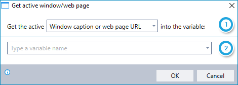 Retrieve information about the currently active window or web page and place it into a new or existing variable.