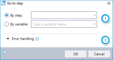 Choose whether to identify the destination step by step number/name or by the value stored in a variable