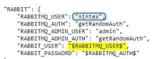 | "RABBIT_PASSWORD": "$RABBITMQ_AUTH$" | Automatically populated based on information from another parameter. No changes required. |