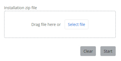 Drag a ZIP (.zip) file into the designated box or select the ZIP file by clicking Select file. Be aware that only the selection of ZIP (.zip) files is allowed.