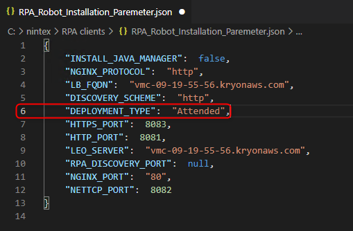 C:\nintex\RPA clients\RPA_Robot_Installation_Paremeterand change the Deployment Type toAttended, then save the changes.