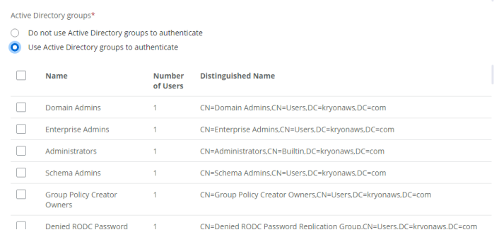 If you select this option, choose one or multiple objects from the list of Active Directory objects represented by CN (Common Name) values.