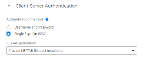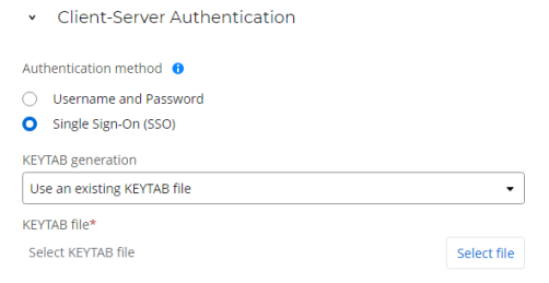 Use an existing KEYTAB file: Click Select file to locate and choose the KEYTAB file that contains your authentication keys.
