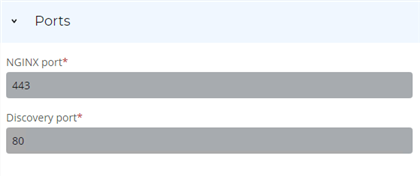 Configure the ports as needed. Note that default values are provided, so check that these default ports are not currently in use on the server. If any of the default ports are already in use, modify them to available ports.