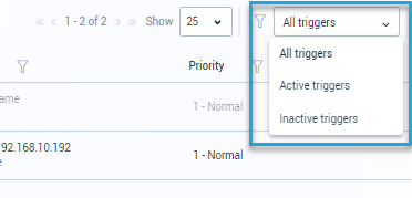 You can filter the Trigger list by selecting from the filter triggers dropdown.