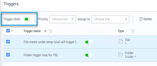 Click the trigger in the list or for multiple triggers, tick the checkboxes of the triggers you wish to activate
