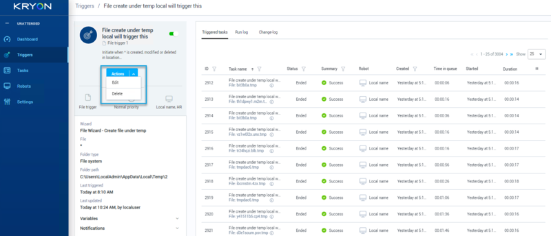 From the trigger properties page, click the ACTIONS button, then select Edit