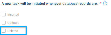 When creating a database trigger, you have the option to set the trigger initiation to whenever database records are deleted: