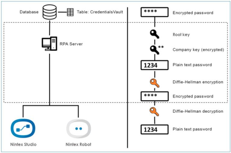 The Nintex Credentials Vault is a module within the Nintex RPA Platform used to manage login credentials for systems that Nintex robots need to access when performing automation tasks. Usernames and passwords are stored securely using data encryption.