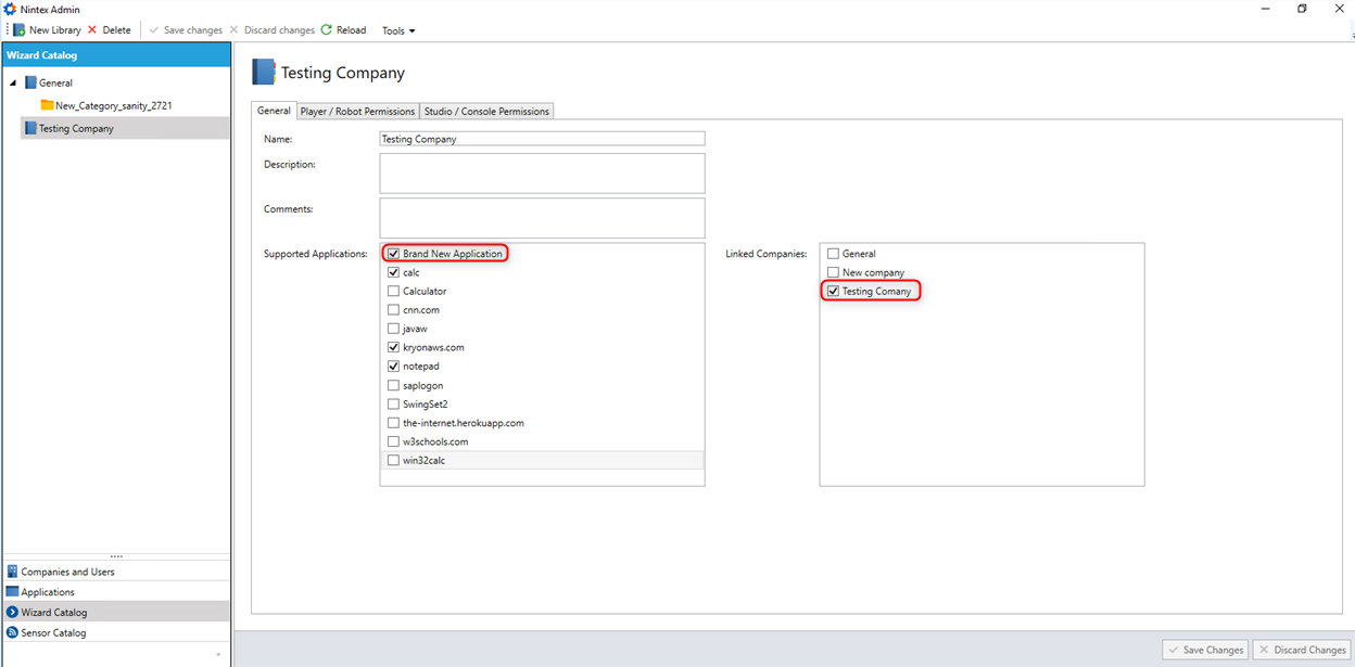The new application is automatically selected, and its properties appear in the Properties Pane, with the General tab active.