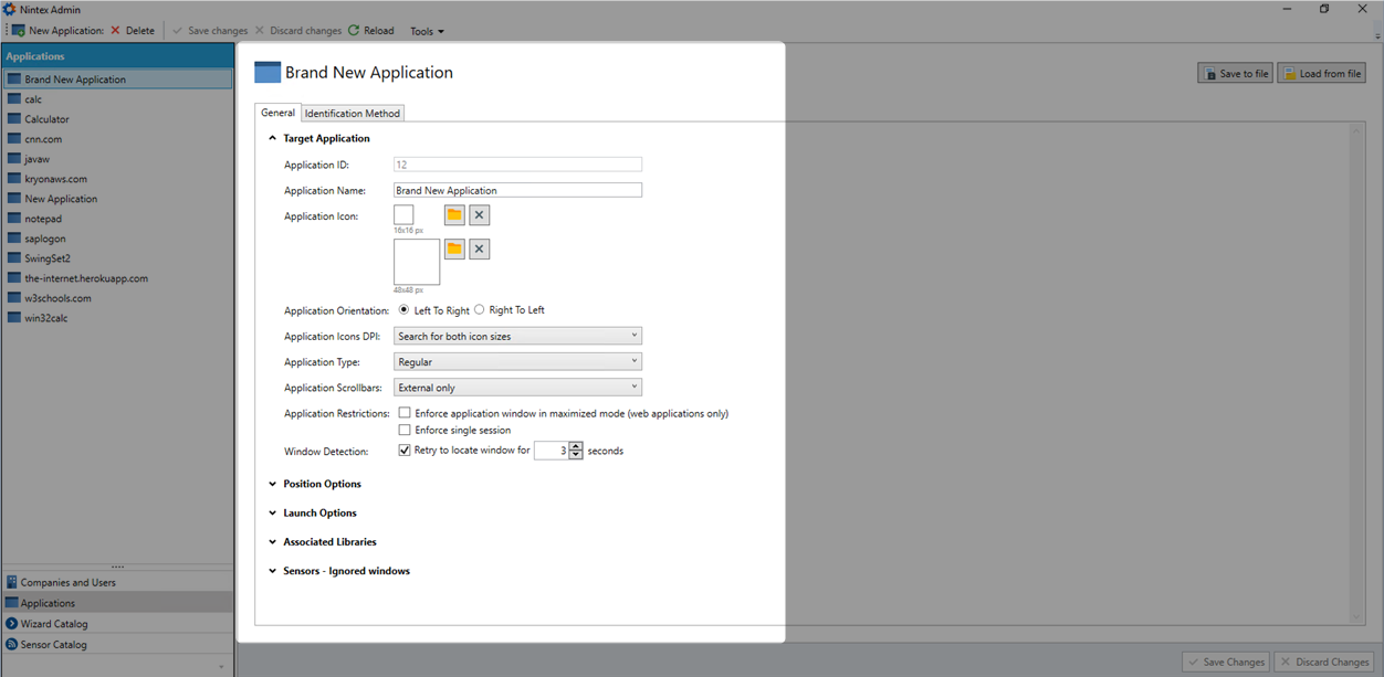 Application Identification Methods are the ways in which the Nintex RPA Platform identifies the application being used. In order to add an application, you must define at least one identification method.