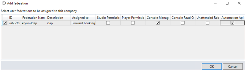 In the Entities Pane, select the company with which you want to associate a user federation.