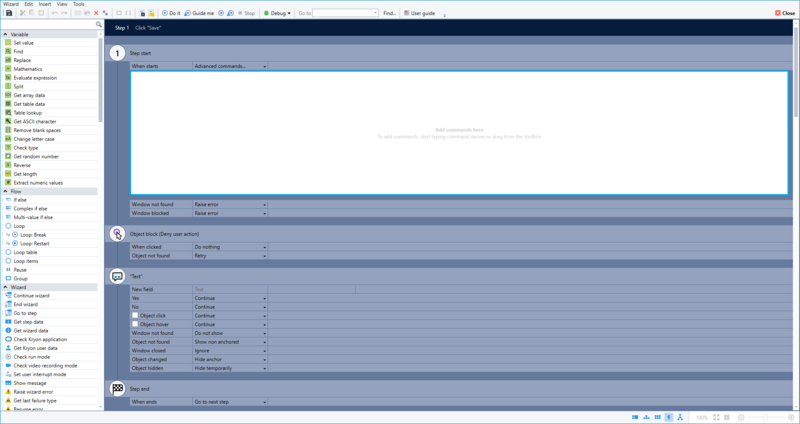 | Block Commands | Control and restrict end-user interactions with the target application during wizard execution, preventing specific actions and defining logical flow. |