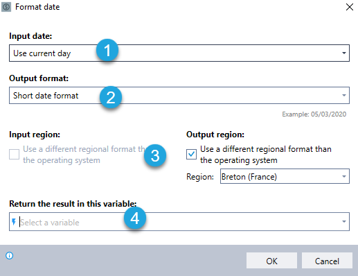 Current date: The wizard will format the current date (according to the system clock of the machine on which the robot is running)