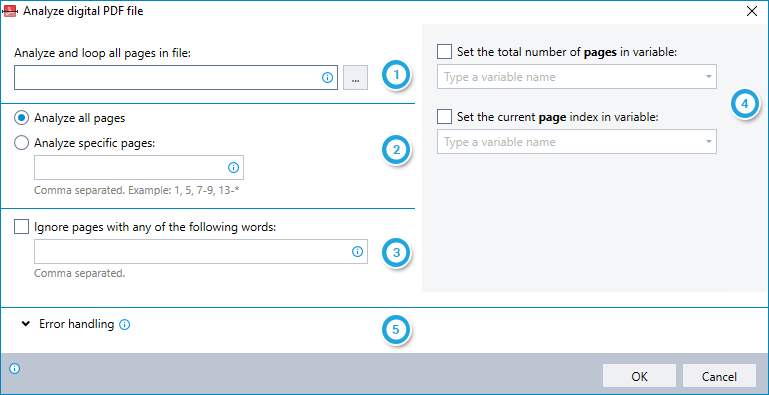 Choose whether to analyze all pages of the file or enter specific pages to analyze.