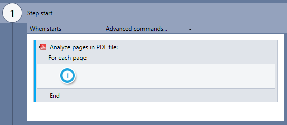 Under certain conditions, you may want to break and/or restart the loop created by the Analyze Digital PDF File container. Make this happen by using the Loop: Break and/or the Loop: Restart command (usually within an If Else command).