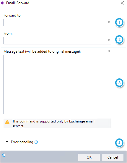 Instruct the wizard how to handle any errors encountered. Read more about error handling.