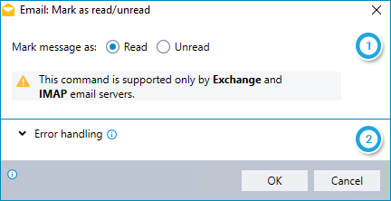 This command is not supported by POP3 servers. For additional details, see POP3 servers don't support all of Nintex RPA's capabilities.