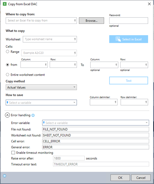 Add the Copy from Excel command and complete the following fields: