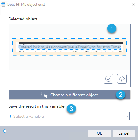 2. After selecting the object, the DOES HTML OBJECT EXIST dialog will appear as follows: