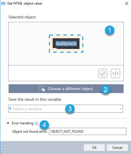 2. After selecting the object, the Get HTML object value dialog will appear as follows: