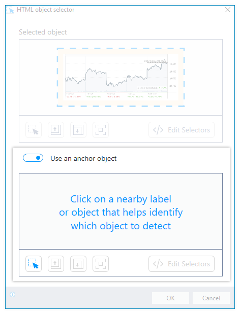 When the Use an anchor object slider is toggled On, a second HTML selection field opens, allowing you to select the anchor object. Use this selection field exactly as you use the main HTML selector.