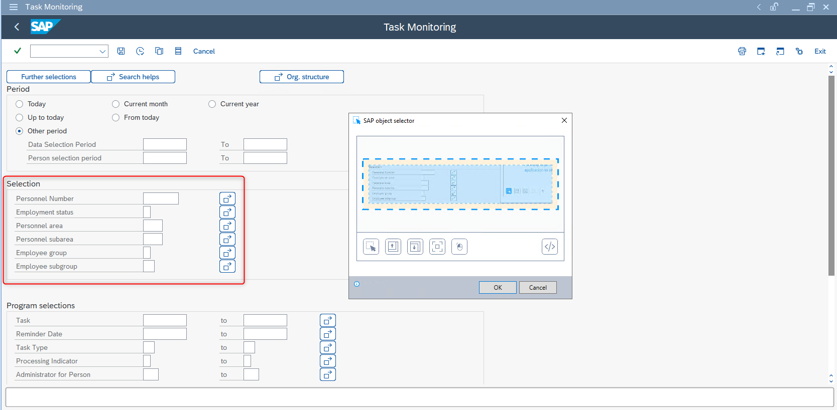 (Optional) Use the buttons on the SAP object selector to refine your selection, visible in the Selected object field. The availability of certain buttons may depend on your selection.