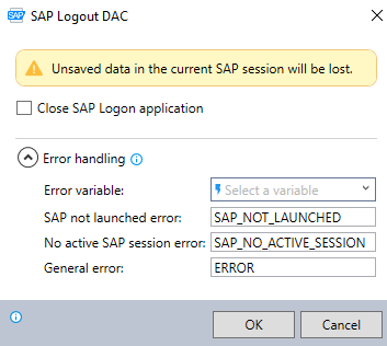 Select Close SAP Logon application if you want to log out and then close the SAP application. Otherwise, the SAP Logon screen remains open after the wizard logs out of SAP.