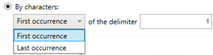 Select By character and choose First occurrence or Last occurrence of a specific delimiter in your selected string, and enter the delimiter. You can include free text and/or values copied from different variables |