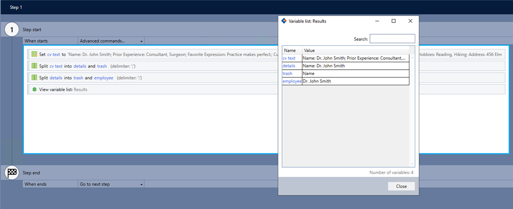 Test your split results with the View variable list command to ensure you get the sections you intended.
