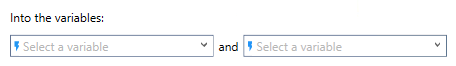 The names of the variables to store the two parts of the original variable. The variables split according to these rules, depending on your selection: