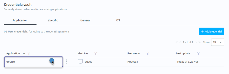 To edit the credential's properties, click on the credential in the list, make the required changes, then click Save.