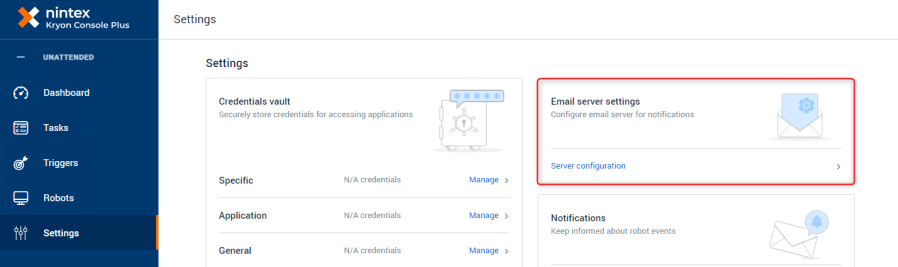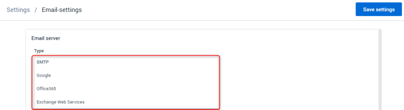 In the Email Server section, enter the settings required to access the outgoing email server and account.: