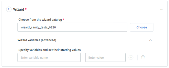 Click Choose to select the relevant wizard from the wizard catalog. These wizards are created and published in the Studio.