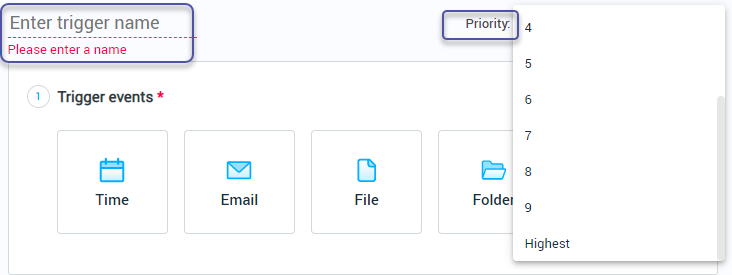 Enter trigger name and priority (lowest, 1 - 9, highest)