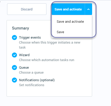Click to Save and activate the trigger, or just to save.