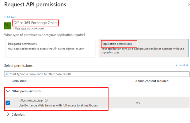 Select Application permission to enable the application to operate as a background service independently, without relying on a specific user. This means the application can run and perform its tasks without requiring user authentication.