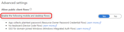 Confirm that Enable the following mobile and desktop flows is enabled.