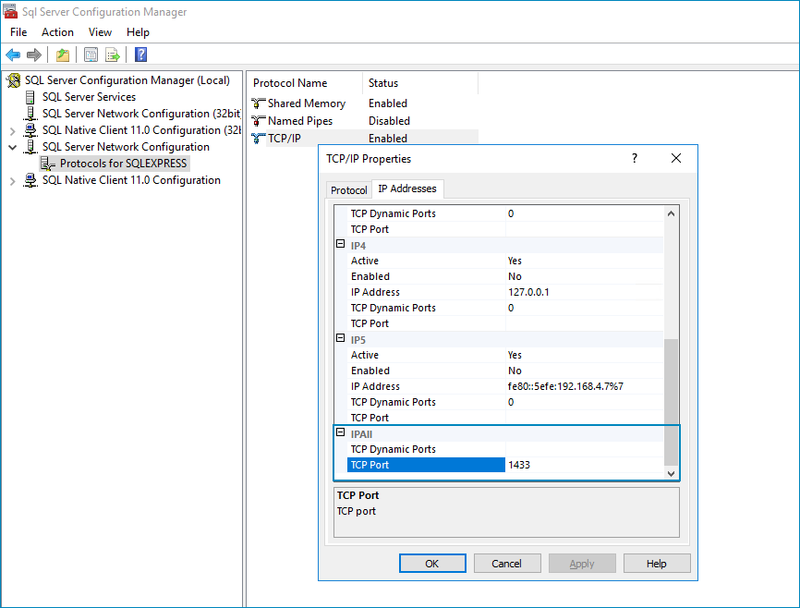 Under SQL Server Network Configuration > Protocols for {Instance Name}, enable TCP/IP