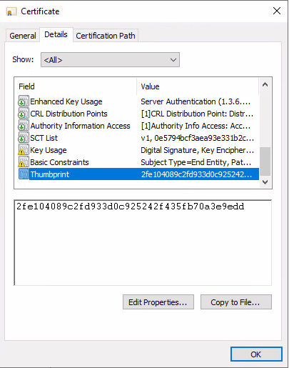 certlmfeature: Retrieve your certificate's Thumbprint value. -