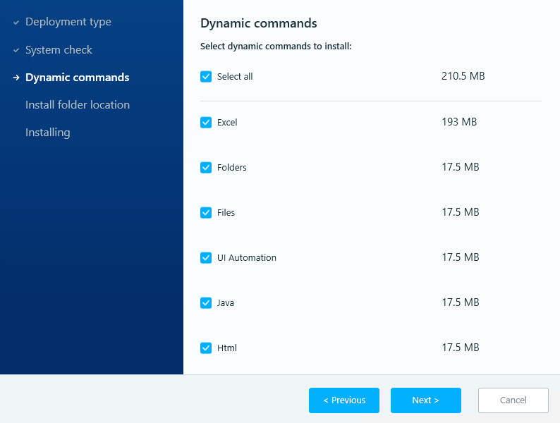 Select the Dynamic Commands you wish to install.